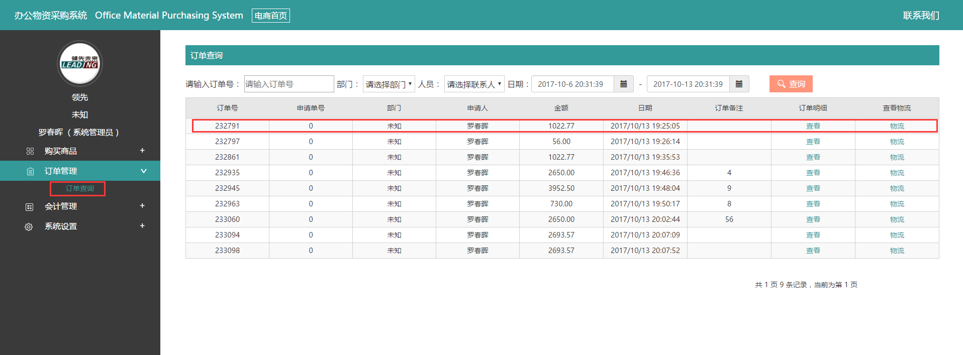 5、訂單查詢